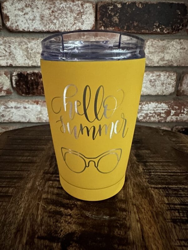 This tumbler has been engraved with Hello Summer. It is the only one we have of this kind.