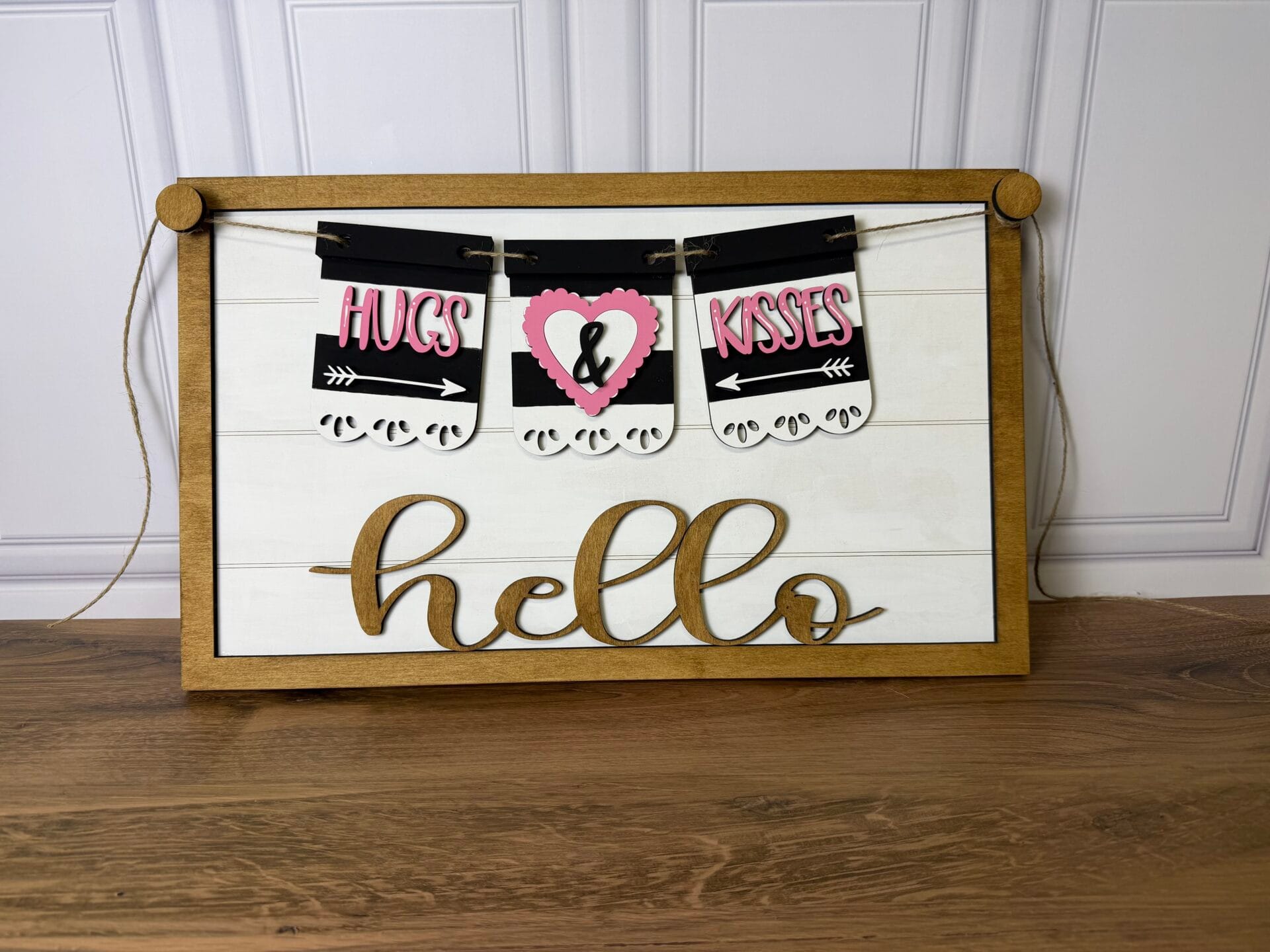 This interchangeable set comes unfinished and ready for you to paint, stain, and embellish. Laser cut from 1/4" birch plywood, you will receive ONE three piece banner set. All Interchangeable banners and sign shown in gallery pics are sold separately in my shop.