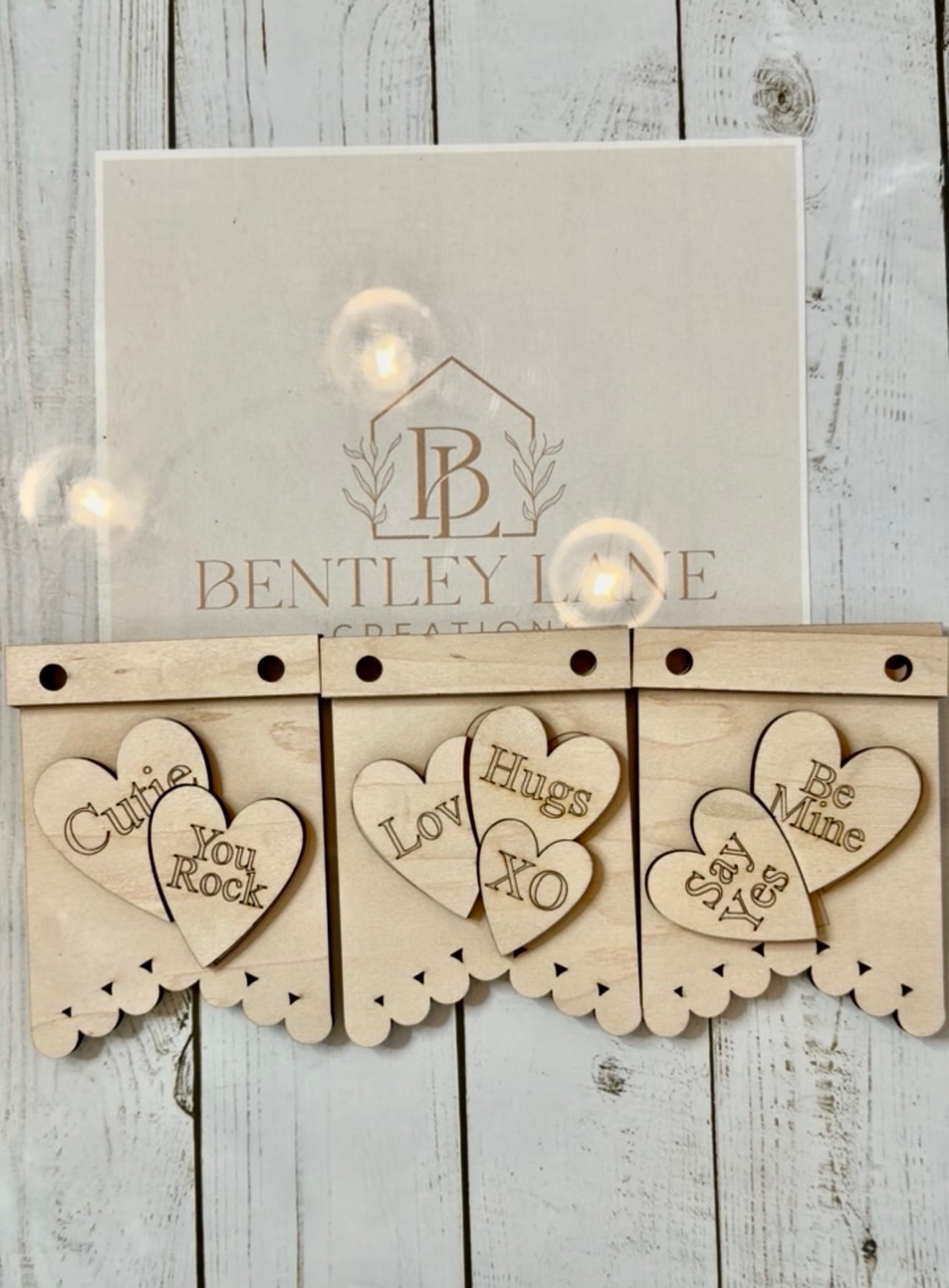This interchangeable set comes unfinished and ready for you to paint, stain, and embellish. Laser cut from 1/4" birch plywood, you will receive ONE three piece banner set. All Interchangeable banners and sign shown in gallery pics are sold separately in my shop.