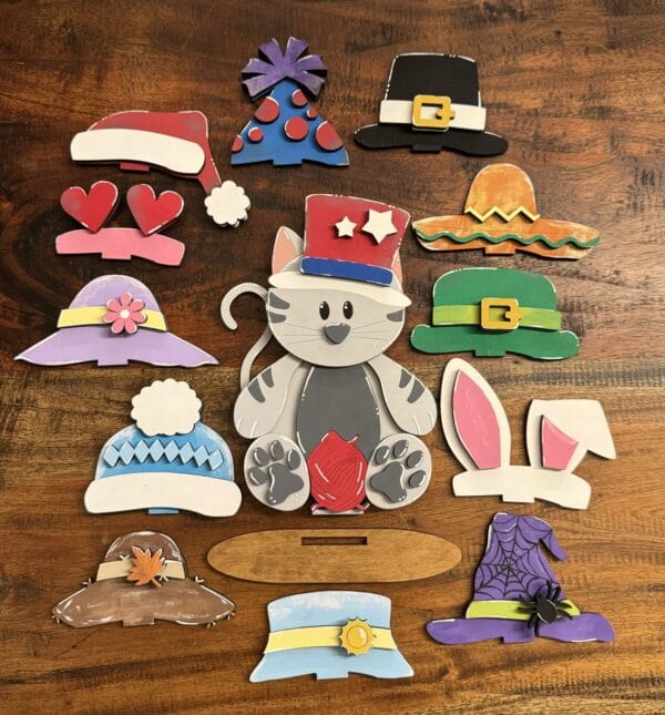 Handmade Shelf /Table Sitter – Cat Interchangeable Hats DIY