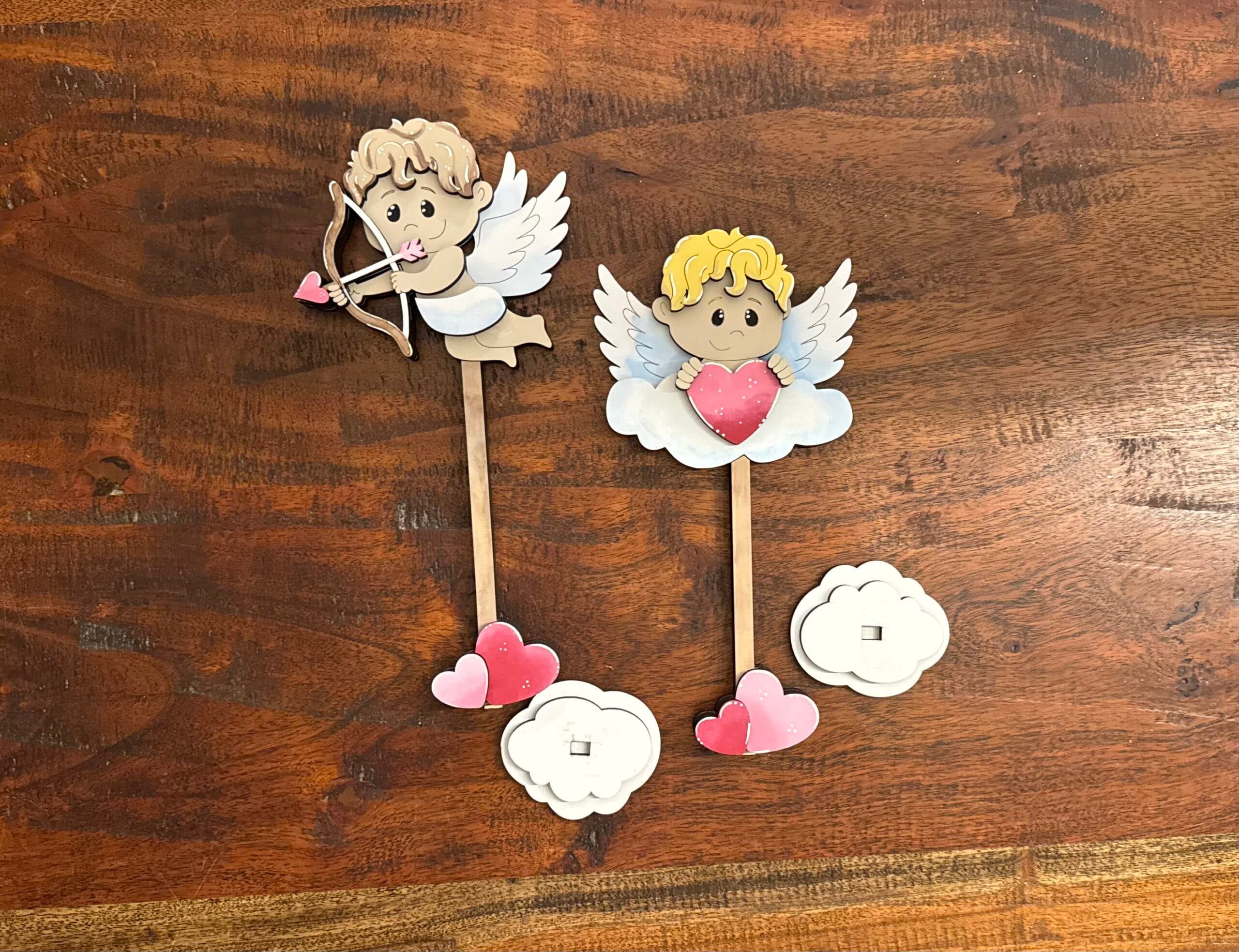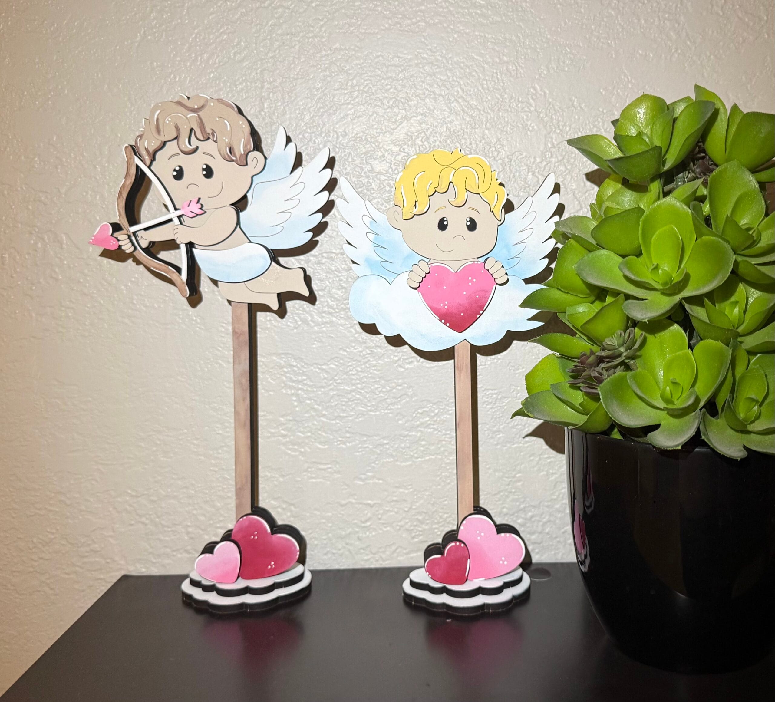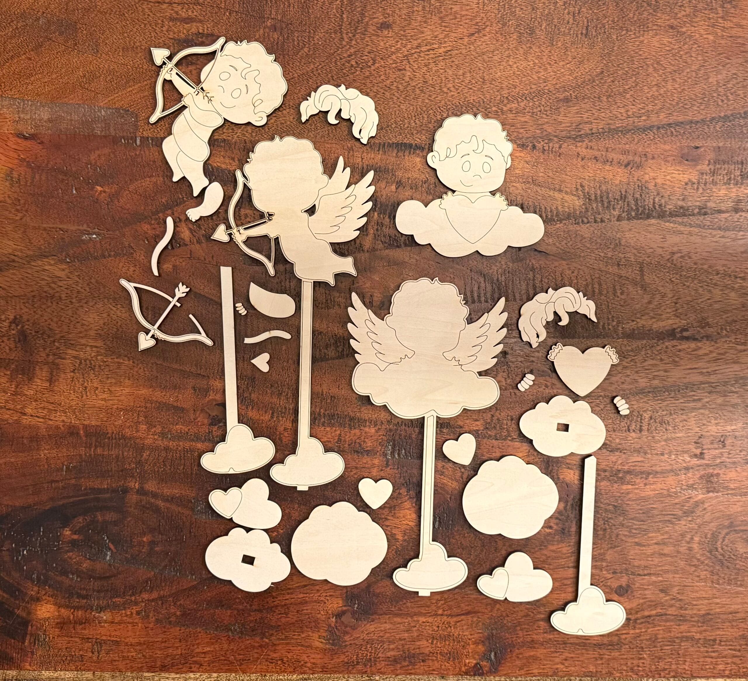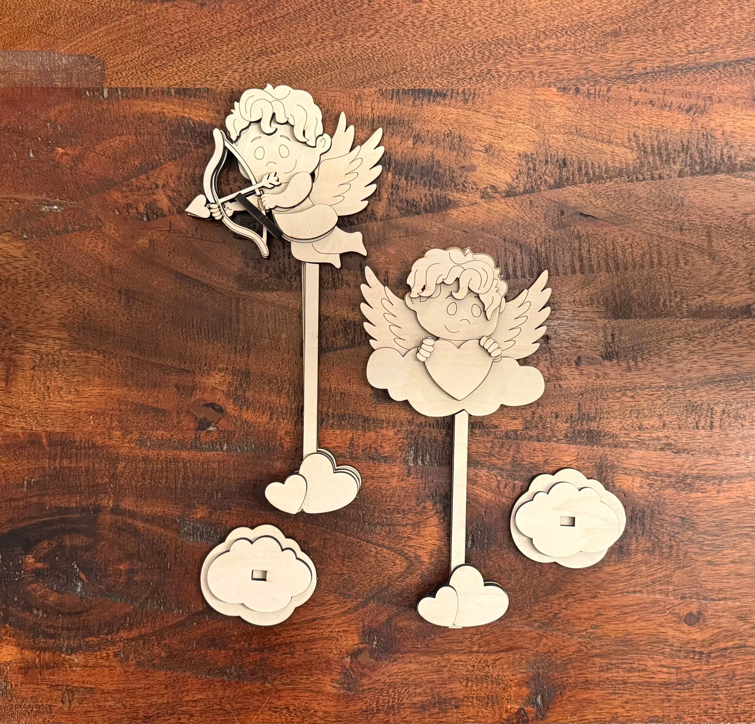 Laser cut from 1/4" birch plywood. This shelf sitter comes unfinished and ready for you to paint, stain, and embellish.  With this purchase you will receive TWO standing Cupids. Follow me on Facebook, YouTube, or Instagram @bentleylanecreations to see my pre-recorded videos on how I finish my DIY pieces from scratch.