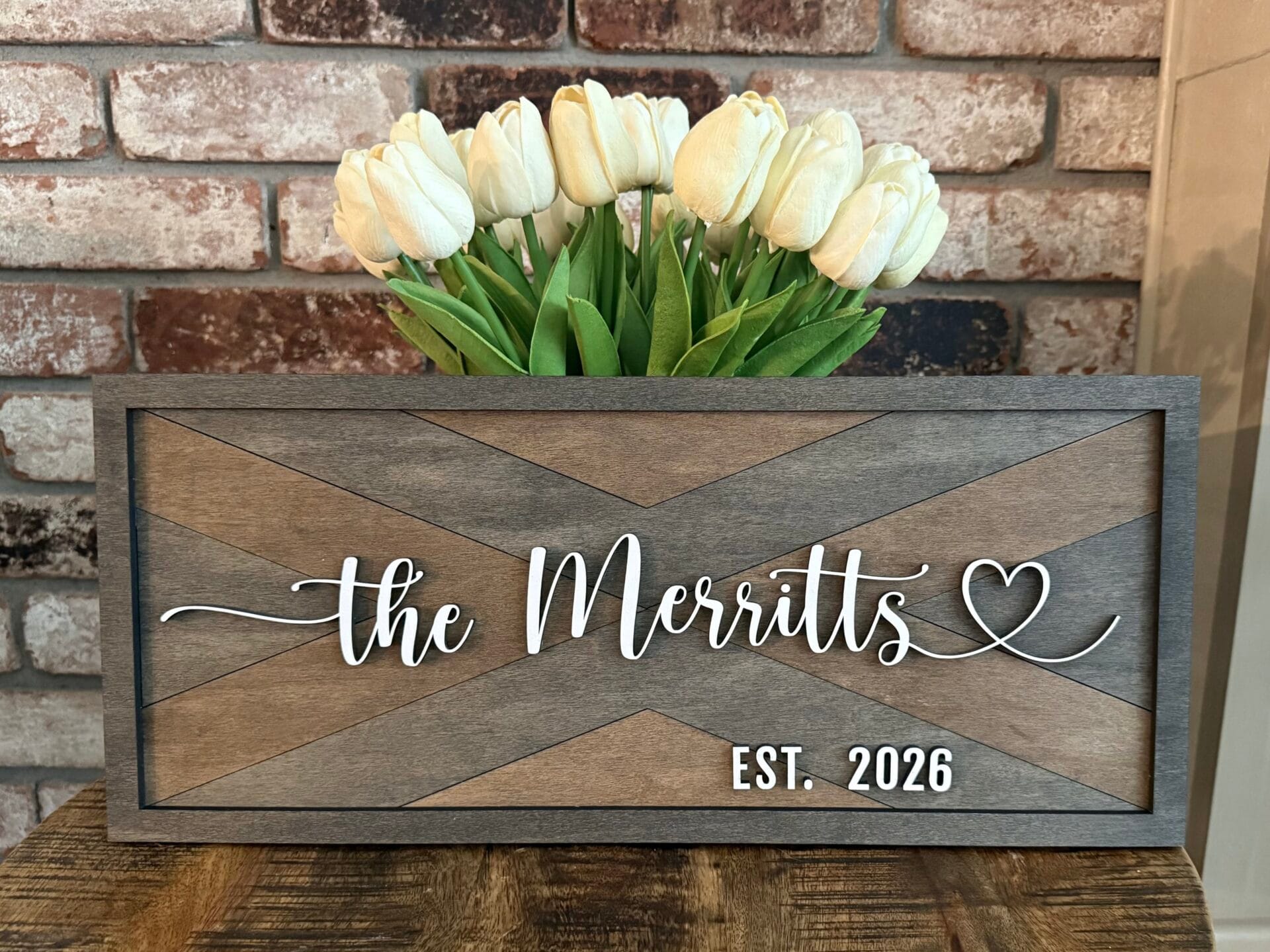 Custom Layered Inlay Wood Signs. The background on these signs are beautiful. You have 18 backgrounds to choose from and 4 different word designs. These make great family signs for a new home, a newly married couple, anniversary gift, or can be customized with any word(s) of your choice. Wooden name signs are the perfect addition to any space. Use them to decorate your home, office, study, or even as a unique gift