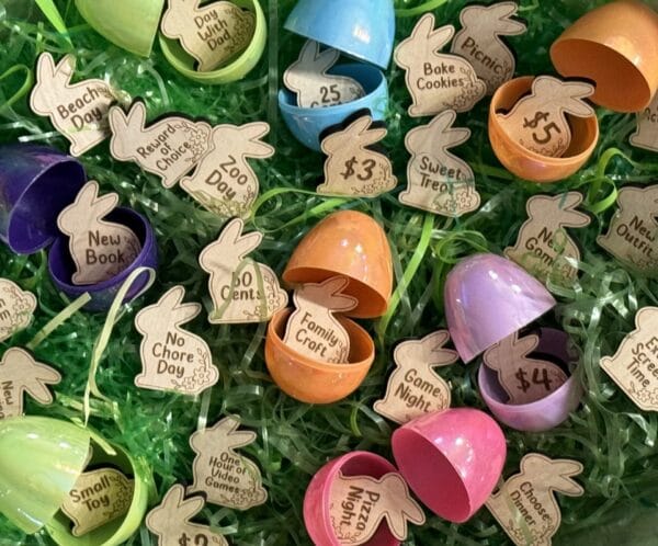 Picture with eggs is sample ONLY. You are getting 30 Easter Bunny Tokens with this purchase.