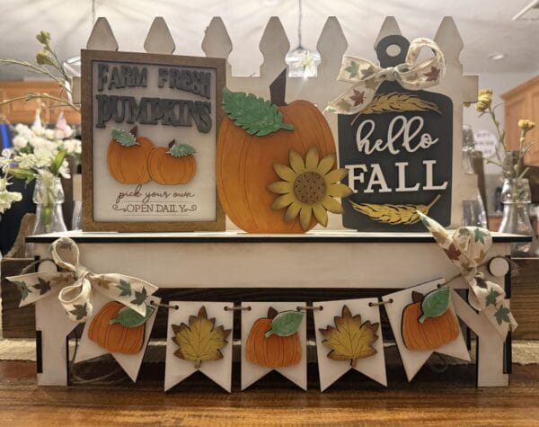 Handmade 4 Piece Fall Pumpkin Bench Interchangeable Set