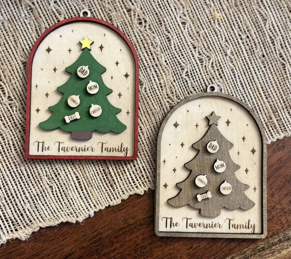 Laser Engraved Family Christmas Tree Ornament 2.7″ x 3.1″