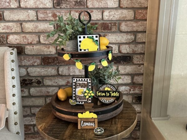 Handmade 7 Piece Farm Fresh Lemon Tiered Tray Set