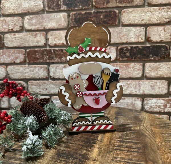 Laser cut from 1/4" birch plywood. This shelf sitter comes unfinished and ready for you to paint, stain, and embellish. With this purchase you will receive ONE standing Gingerbread Maker Gnome shelf sitter. Follow me on Facebook, YouTube, or Instagram @bentleylanecreations to see my pre-recorded videos on how I finish my DIY pieces from scratch.