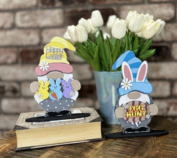 Handmade Shelf /Table Sitter – Gnome Boy/Girl Interchangeable Easter Hat & Hands
