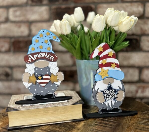 Painted and embellished Gnomes pictured are sample only. This product does not come painted or stained and does not include any embellishments.