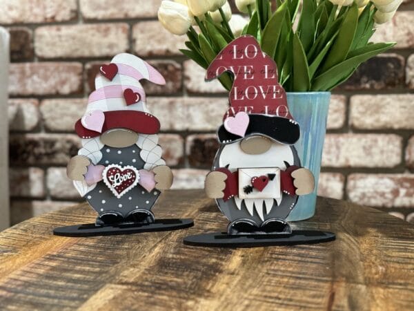 Handmade Shelf /Table Sitter – Gnome Boy/Girl Interchangeable Valentine’s Hat & Hands