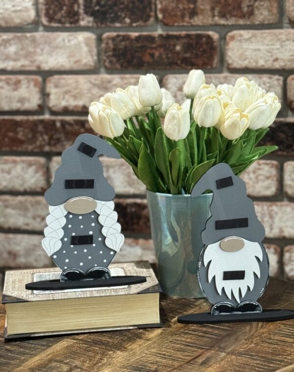 Laser cut from 1/4" birch plywood and 1/8" birch plywood. This interchangeable Gnome boy & girl set comes unfinished and ready for you to paint, stain, and embellish. With this purchase you will receive ONE boy and ONE girl Gnome with stands as shown in the gallery photos. This listing also includes 6 3M Magnetic strips in total, 3 for each of the Gnomes. Follow me on Facebook, YouTube, or Instagram @bentleylanecreations to see my pre-recorded videos on how I finish my DIY pieces from scratch.