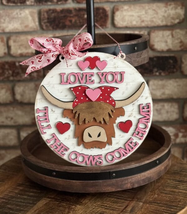 Highland Cow Valentine Door Hanger