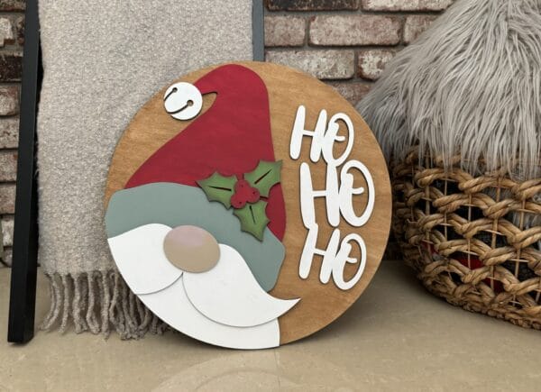 Handmade Door Hanger – HO HO HO Gnome Santa