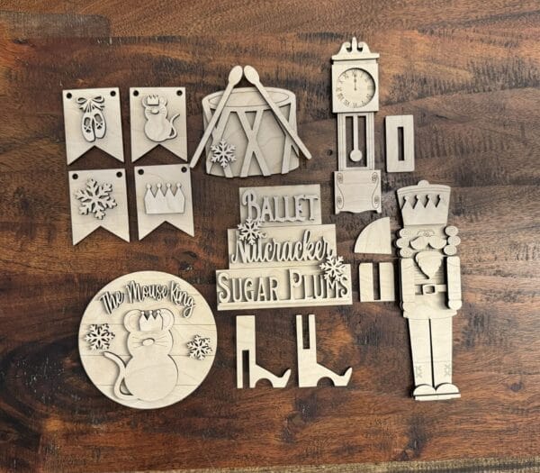 Laser cut from 1/4" birch plywood. These cutouts come unfinished and ready for you to paint, stain, and embellish. These are sold individually, you get all of the pieces shown in the gallery pics for each one you choose to purchase. I also sell these as a bundle, so if you plan to purchase all 6, check out that listing as you get a better deal on the bundle! All pieces in the Nutcracker banner are pre-drilled with holes for you to easily string together. If you don't want to hang them as a banner or garland, you could easily make them individual ornaments or hangers. Some of these pieces would also be cute tucked into a wreath or as stand alone shelf sitter or shelf leaner. The possibilities are truly endless with these.