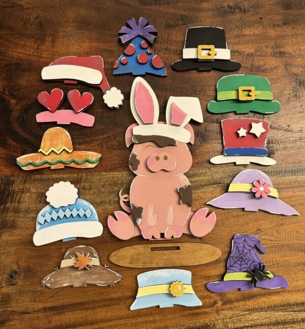 Handmade Shelf /Table Sitter – Pig Interchangeable Hats DIY
