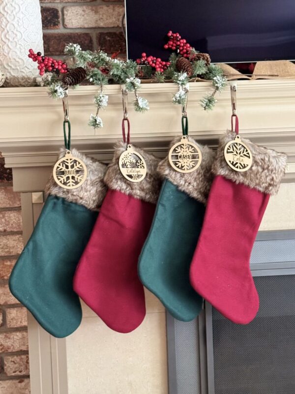 These personalized Christmas decorations can be used for a Christmas tree, Christmas gifts, or as a home Christmas decor, like your stockings.