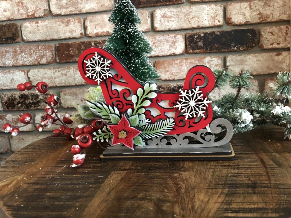Laser cut from 1/4" birch plywood. This sleigh shelf sitter comes unfinished and ready for you to paint, stain, and embellish. With this purchase you will receive ONE sleigh shelf sitter and all the wooden parts you see in the picture. Follow me on Facebook, YouTube, or Instagram @bentleylanecreations to see my pre-recorded videos on how I finish my DIY pieces from scratch.