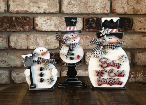 Handmade Shelf Sitter – Standing Snowmen Trio