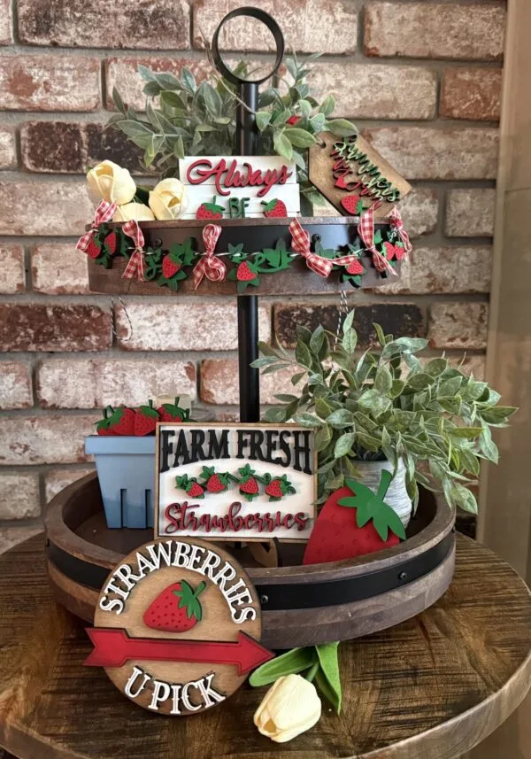 Handmade 7 Piece Strawberry Farm Tiered Tray Set