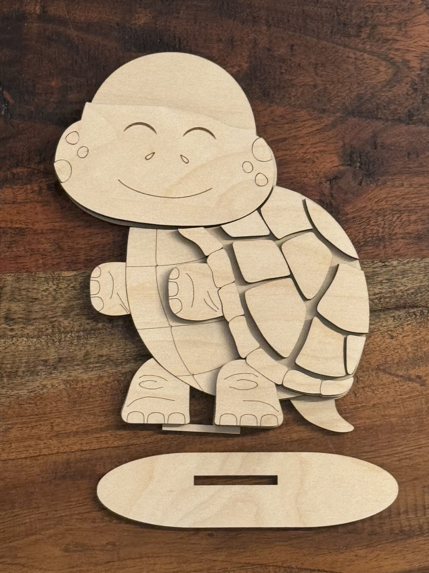 Laser cut from 1/4" birch plywood. This interchangeable turtle comes unfinished and ready for you to paint, stain, and embellish. With this purchase you will receive ONE turtle with stand and ALL of the interchangeable hats you see shown in the gallery photos. Follow me on Facebook, YouTube, or Instagram @bentleylanecreations to see my pre-recorded videos on how I finish my DIY pieces from scratch.