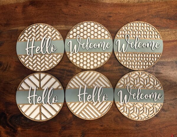 Laser cut from 1/4" birch plywood. This door hanger comes unfinished and ready for you to paint, stain, and embellish. This door hanger comes with all the pieces and words seen in the photos, you choose between the six designs and then choose your word. If you don't want to hang it as a door hanger, you could easily make this into a wreath or sit in a stand on a shelf. The possibilities are truly endless with these and they make great gifts too!