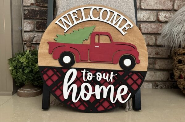 Welcome To Our Home Farmhouse Truck Christmas Door Hanger