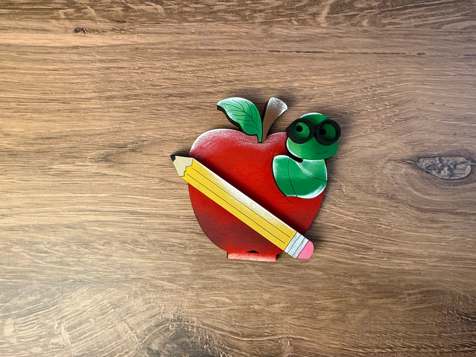Apple Bookworm- 3.8" x 3.8"