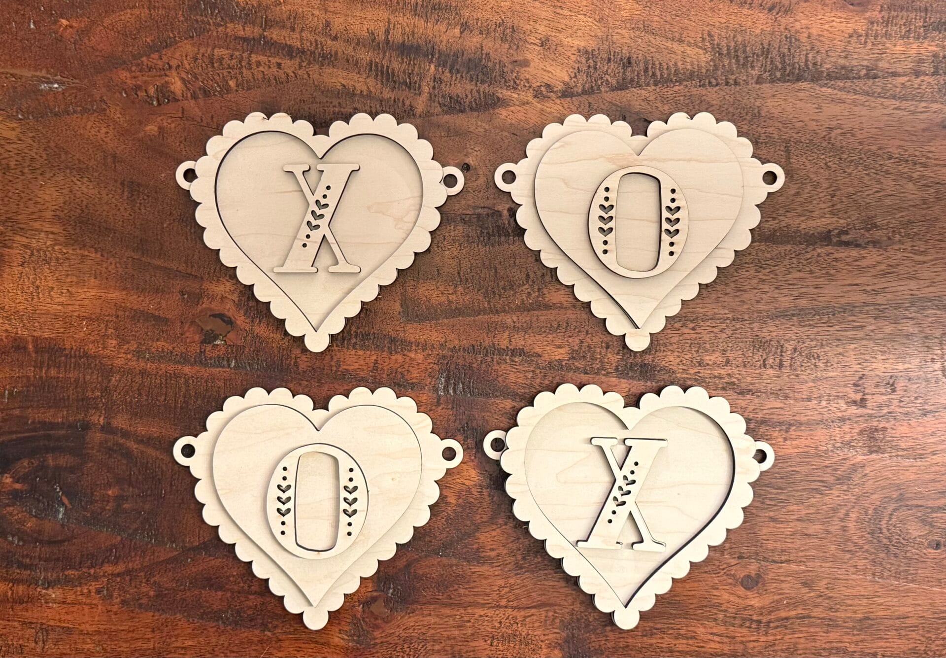 Laser cut from 1/4" birch plywood. These banner cutouts come unfinished and ready for you to paint, stain, and embellish. These are sold as a set, you get 4 banner pieces. All pieces are pre-drilled with holes for you to easily string these together. If you don't want to hang them as a banner or garland, you could easily made them individual ornaments or hangers. These would also be cute tucked into a wreath. The possibilities are truly endless with these.